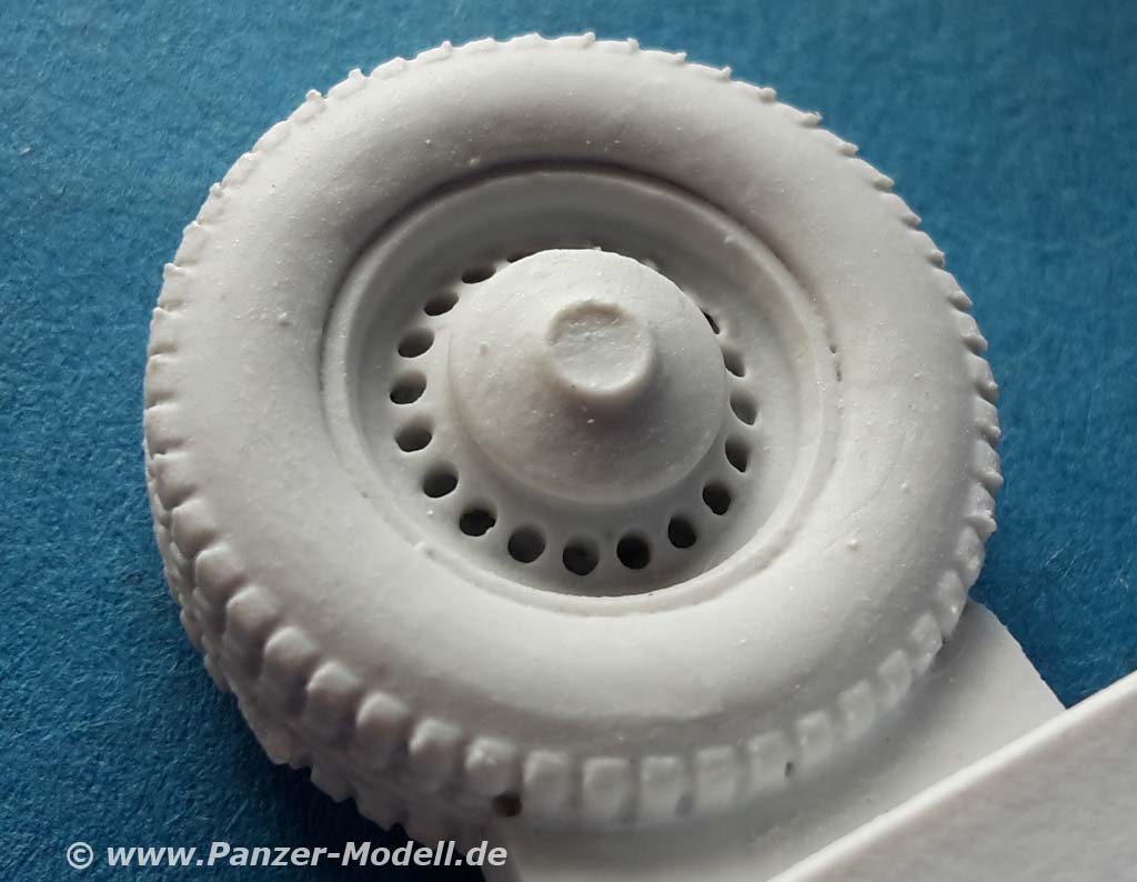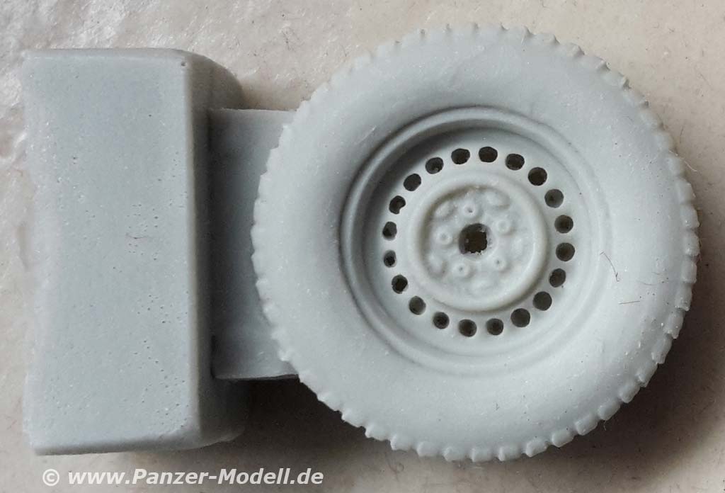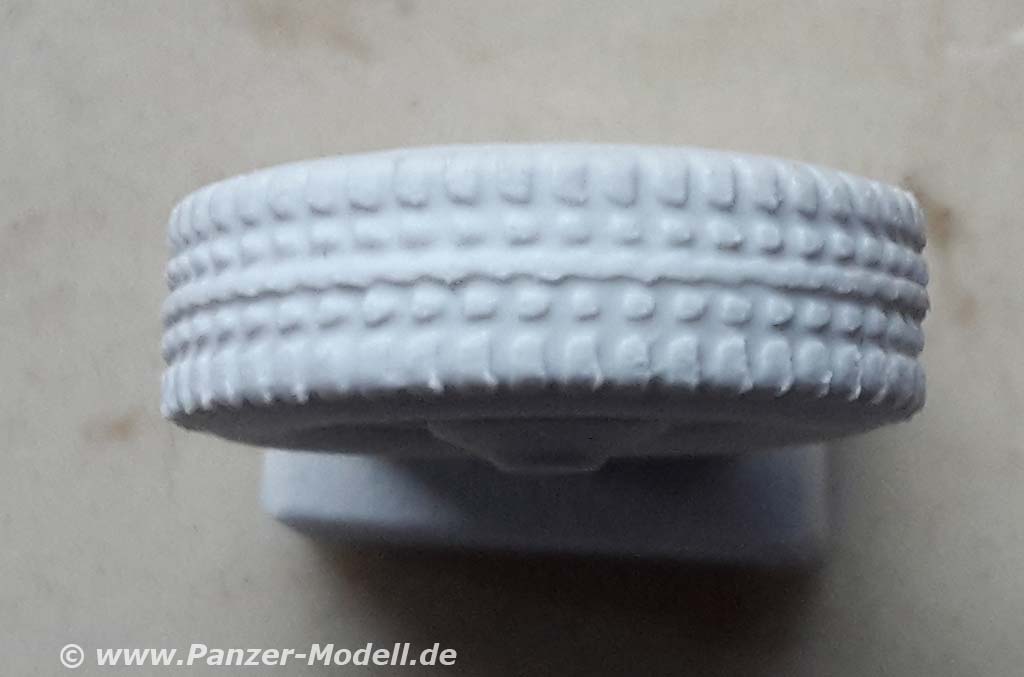 Damit kann man endlich die räudigen Reifen aus dem Takom Bausatz ersetzen deren Hauptproblem für mich die Beschaffenheit und Ausdünstung des schwarzen Reifengummis ist. Denn nach Bemalung sowohl mit lösemittelhaltigen als auch Acrylfarben fangen die Reifengummis zum einen an, die Farbe nicht zu halten und zum anderen hauptsächlich klebrig zu werden ... und ich mag mir nicht ausmalen wie diese dann in ein paar Jahren aussehen.
