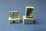 Suitcases Das Zubehörset beinhaltet insgesamt 21 Bauteile aus Resin und 7 dünne Plastikrundstäbe zum Bau vier unterschiedlichen modernen Rollkoffern, Trolleys oder Rolltrolleys oder wie auch immer man die Koffer bezeichnen möchte. Einen der Koffer kann man mit offenem Deckel bauen, die anderen drei können nur geschlossen dargestellt werden. Die Gussqualität ist ganz hervorragend, feinste Details sind vorhanden. Lufteinschlüsse sind nicht vorhanden und alle Teile sind vollständig ausgegossen. Die Angüsse sind gut gewählt und dürften bei der Versäuberung der Bauteile keine Probleme bereiten Eine Bauanleitung gibt es nicht, aber auf der Rückseite der Packung ist ein Farbfoto der gebauten und bemalten Koffer vorhanden. Das ist vollkommen ausreichend um als Bauanleitung und Hilfe für die Bemalung dienen. Insgesamt macht dieses Set einen hervorragenden Eindruck. Gerade für den Bau von modernen Dioramen, aber auch für moderne Fahrzeuge dürfte so ein Trolley ein tollen Blickfang und einen sehr „schönen Farbklecks“ darstellen.