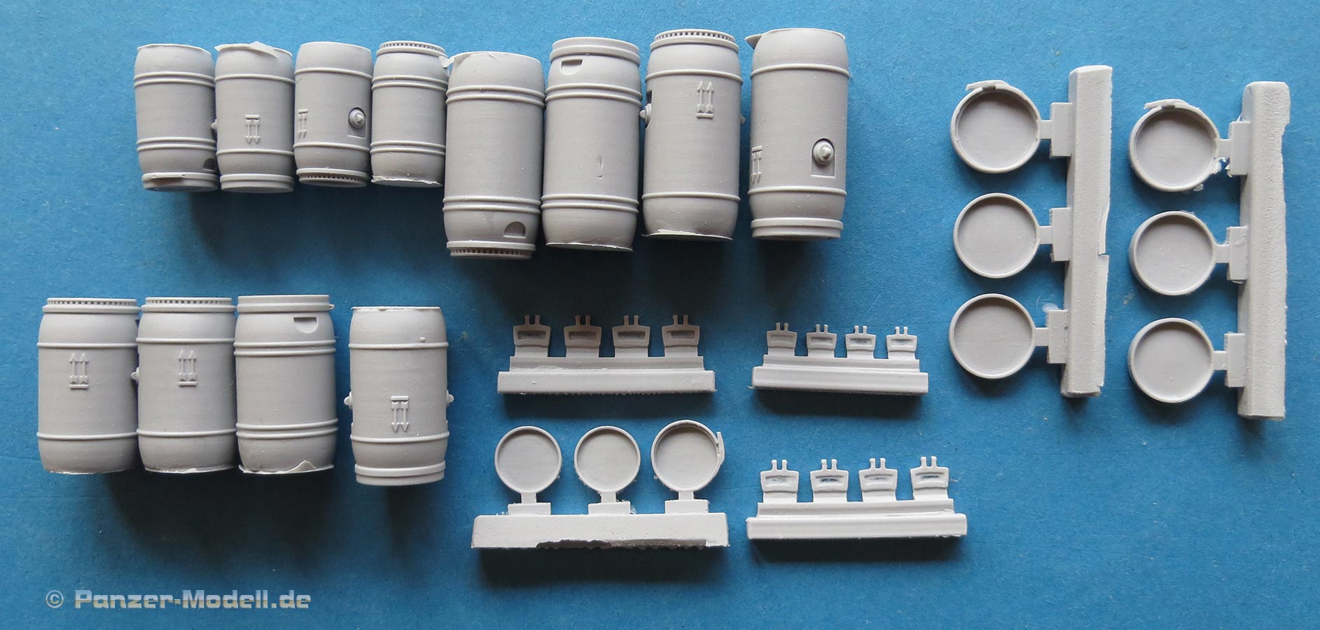 Für Dioramenbauer und als Beladung für Fahrzeuge bietet uns Macone Models nun Plastikfässer in drei verschiedenen Größen in 1:35 an.