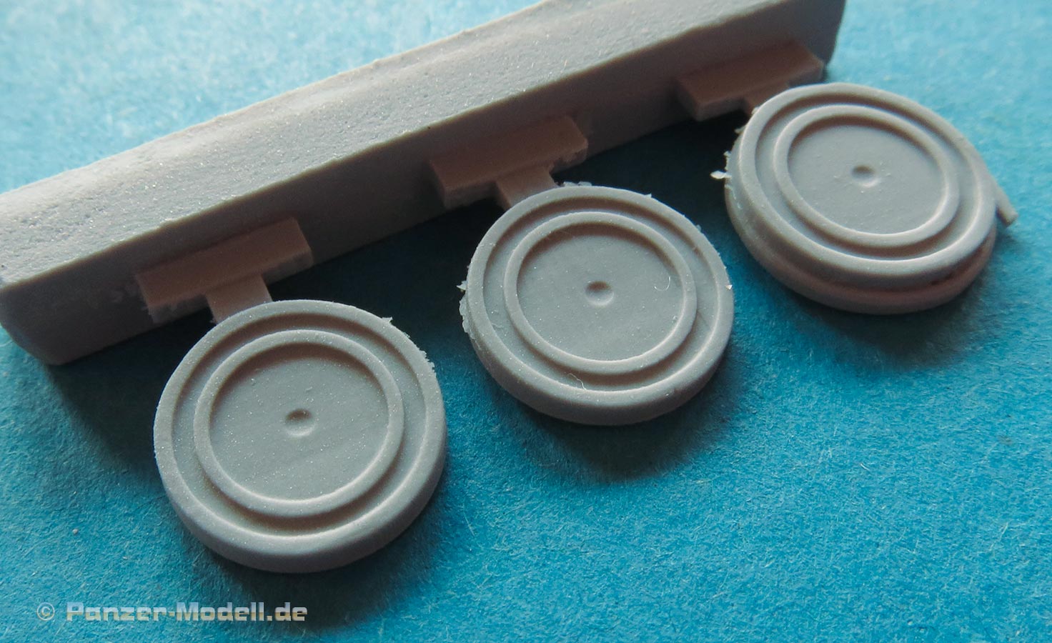 Die Gussqualität ist ganz ausgezeichnet - sauber, blasenfrei und sehr detailliert. Die Angüsse sind minimalistisch und bei den Fässern an der Unterseite sodass man sie leicht verschleifen kann.