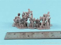 Opuntien (Opuntia) sind eine Pflanzengattung aus der Familie der Kakteengewächse (ca. 190 Arten). Verbreitungsgebiete: Weite Teile von Nord- und Südamerika einschließlich der Karibik. Bedacht wurden mit diesem Set die Freunde des Massstabs 1:72. Gegenüber der Packung in 1:35 enthält die Schachtel die doppelte Anzahl von Kakteen. Alles wahrscheinlich auf 1:72 herunterskaliert. Alles aber keine Verschlechterung! Als Vorbild wurden Feigenkakteen ausgewählt. Auf einer Grundplatte sind mehrere Gewächse in verschiedenen Formen und Größen entstanden. Raster, offensichtliche Druckfehler oder Schichten sind keine zu finden und offenbaren einen erstklassige Druck. Alles sehr detailreich. Die Anzahl der Supports ist diesmal als angenehm wenig zu bezeichnen. Trotzdem sollte man die nötige Sorgfalt walten lassen. Ein feines Set und eine Bereicherung für entsprechende Dioramen. Nicht ganz billig, trotzdem empfehlenswert!