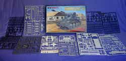 Die Schachtel beinhaltet 11 Spritzlinge mit einer Unzahl an Teilen (darunter auch noch ein kompletter Pz.38(t) Turm für die Grabbelkiste) in recht guter Qualität, auch wenn hier und da an feinen Teilen Fehler (Fischhäute, etc) auftreten. Viele der Komponenten wurden vom alten VM Panzer 38(t) übernommen, machen aber einen soliden und guten Eindruck. Die Teile für den Marder III sind, soweit man so aus dem Kasten beurteilen kann, gut detailliert (auch wenn nicht ganz so fein, wie bei Tamiya), lediglich der Gitterkorb macht keine so gute Figur. Was man diesem Bausatz auf jeden Fall zugute halten muss ist, dass er eine gute Inneneinrichtung (mit Getriebe, Kardanwelle, Bodenplatte, sowie Fahrer und MG-Schützenplatz) bietet und eine schöne Einzelgliederkette!