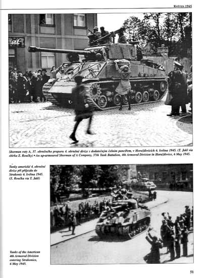 Dann geht es schon ans Eingemachte - im folgenden kommt es zu der Zeit März/April 1945 zu Bodenkämpfen auf tschechischem Gebiet. Dies wird kapitelmäßig in verschiedene Operationen eingeteilt und historische genau aufgearbeitet. Im folgenden gibt es die Kapitel der amerikanischen Grenzüberschreitung nach Tschechien, der Tschechische Aufstand, der in verschiedenen Gebieten kapitelmäßig unfangreich abgehandelt wird, Angriff amerikanischer Einheiten, die Fahrt nach Velichovky, das Ende der Wehrmacht und Waffen-SS in Tschechien, der Rückzug der Heeresgruppe Mitte, die Operationen der Roten Armee in Prag, der letzte Panzerkampf, die tschechische Armee im Exil, die Beschreibung der ausländischen Armeen, die Aufgabe der deutschen Armee im Mai 1945 und das große Aufräumen.