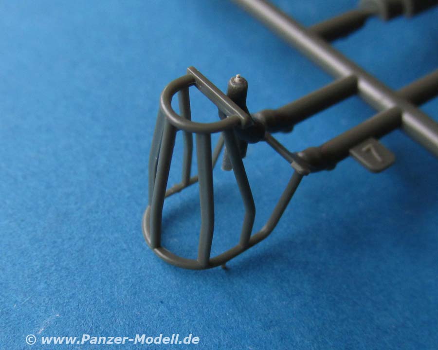 Die Luken mit den MG Ringen und Lukendeckeln sind ganz hervorragend und fein in Plastik gemacht. Beide Luken lassen sich natürlich wahlweise offen oder geschlossen bauen. Das deutsche MG ist für Spritzguss ganz gut gemacht.