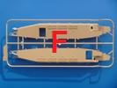 Spritzling E beherbergt die Seitenblenden für die Räder. Achtung, die Bauanleitung sieht die Montage dieser Blenden generell vor, aber man sollte beachten, dass Panzer Nr. 93 Alsace und Panzer Nr. 90 Poitou auf Originalfotos und der Bemalungsanleitung mindestens die äußeren nicht trägt. Ist die Blende montiert, sieht man von all den vielen Laufrollen….. nichts mehr!