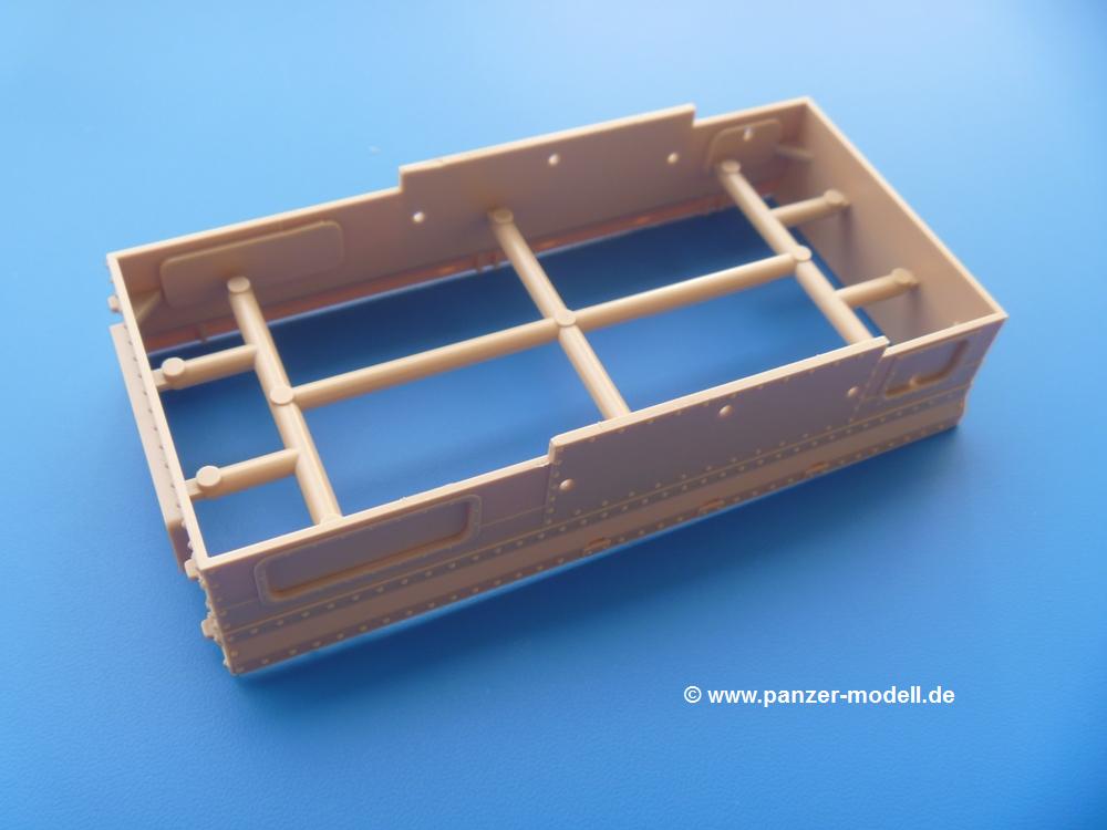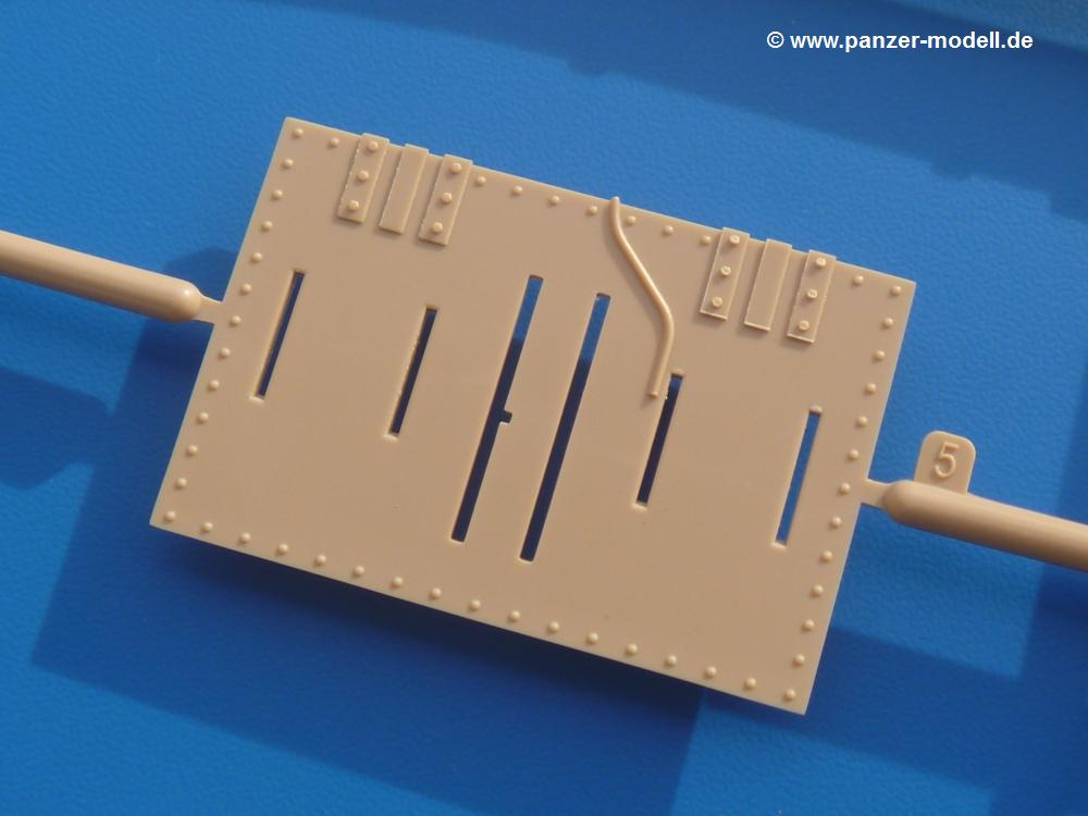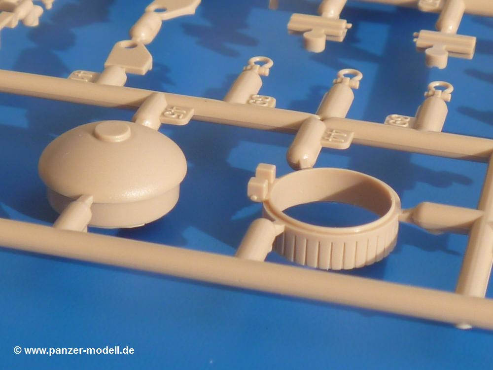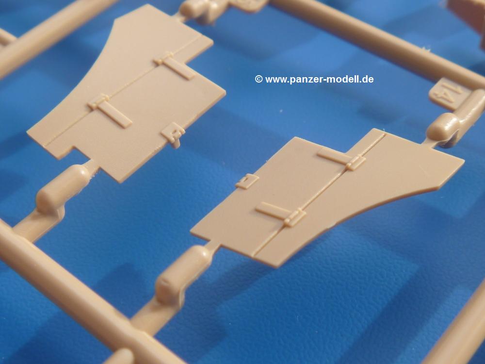 - A (1x): Unterboden für Türme, Seitentüren, Kanone, -blende, Blendenfassung, Abgasrohre, Scheinwerfer, -haltebügel, Stützrollenhalter, Bugplatte