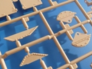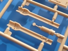 Angenehm auffallend sind die übersichtlichen Spritzlinge. Einige sehr große Teile beherrschen den Inhalt und sehr viele (sehr, sehr viele) Räder. Die kleinsten und feinsten Teile sind die äußeren Leitungen an der Motorverkleidung. Keine Miniteilorgie, aber auch keine Inneneinrichtung, wie man es heutzutage schon öfter findet.