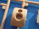 Der Hauptscheinwerfer ist innen hohl und enthält die Glühbirne. Den Scheinwerfer sollte man vorsichtig vom Spritzling trennen, um den Rand nicht zu beschädigen.