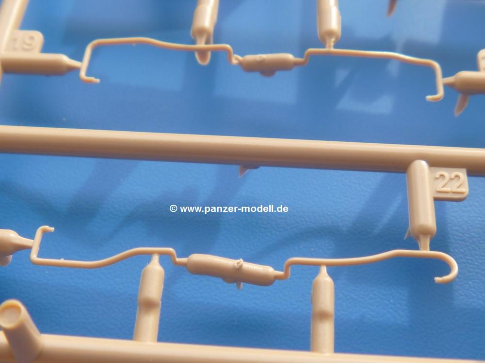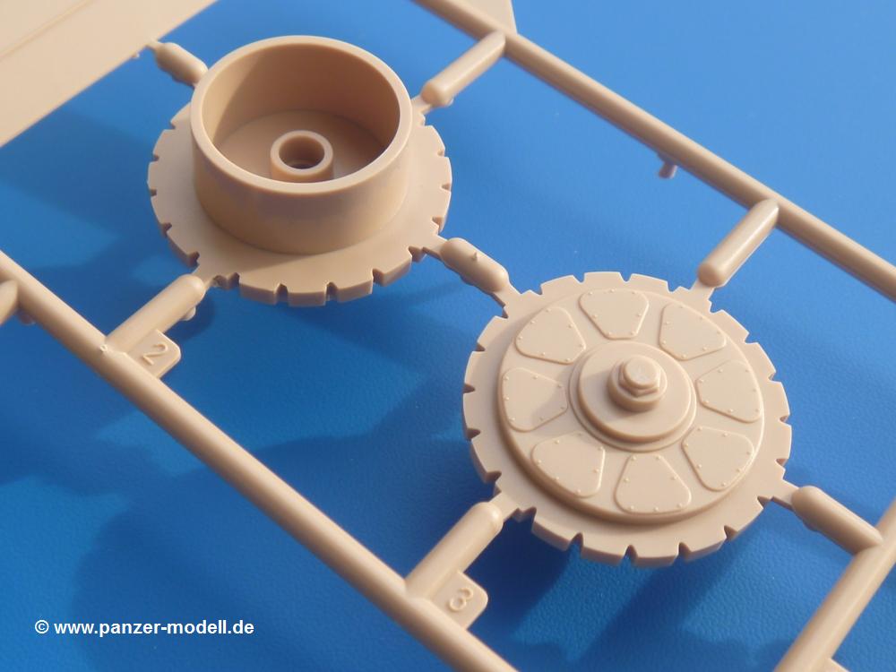 An den 4 Spritzlingen mit den Rädern finden wir auch die 8 mm MGs mit ihren Kugelblenden. Die MG Läufe sind aufgebohrt, die Kugelblenden deuten die Visierlöcher für dem Schützen an.
