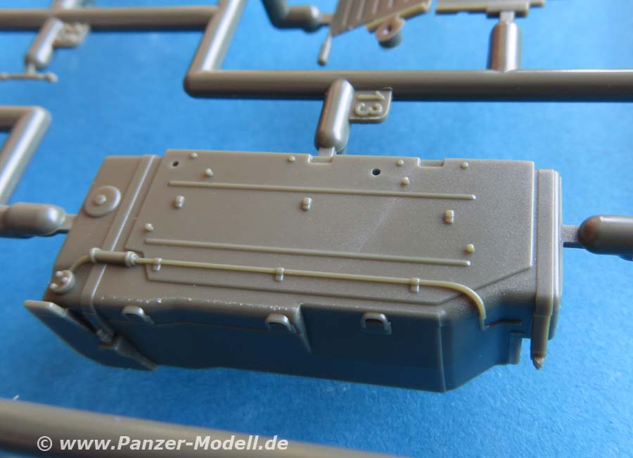 Auch extrem gelungen sind die beiden aufsatz Staukäste auf den Kettenblechen, die dem ganzen Gefährt ein noch bulligeres Aussehen verleihen.