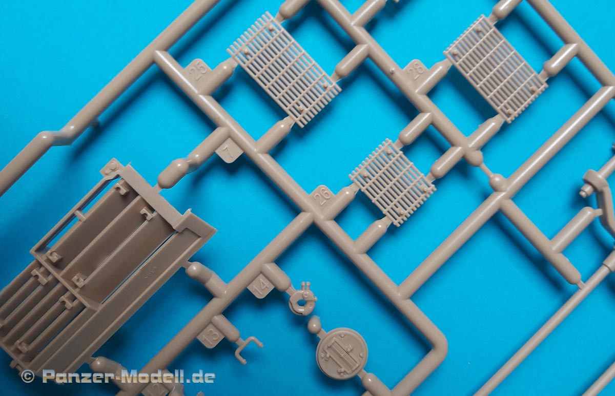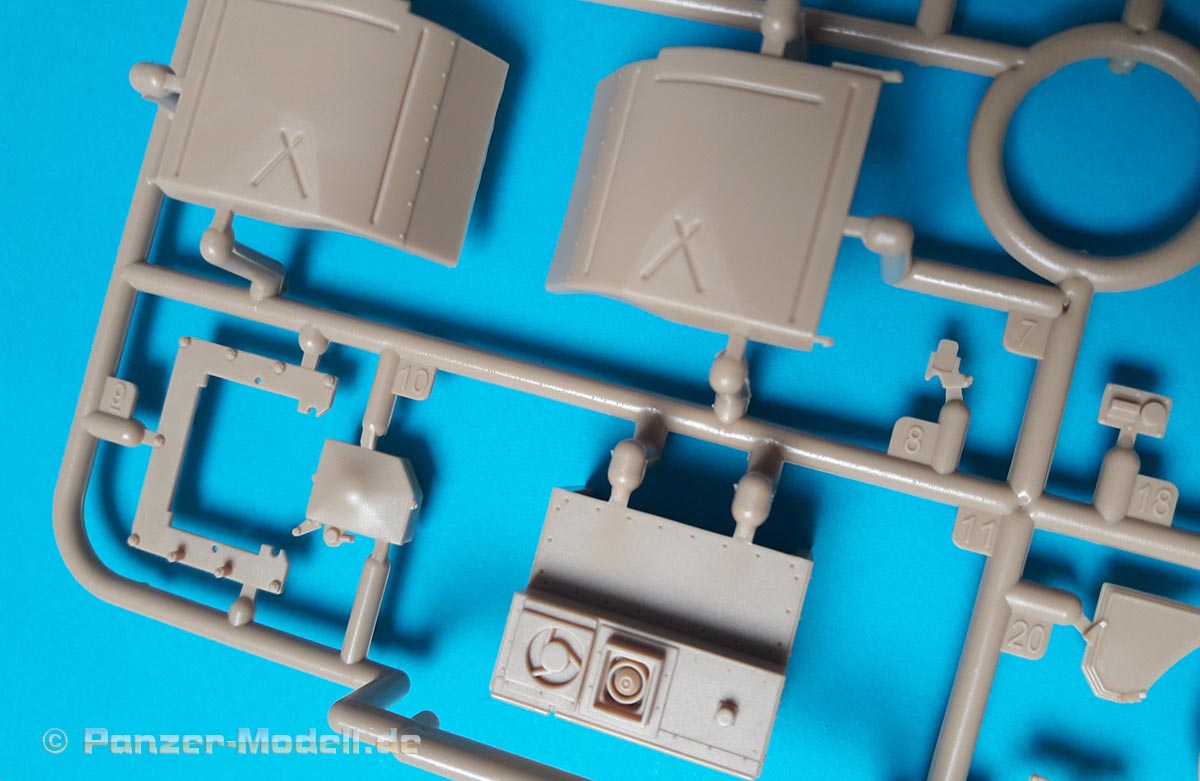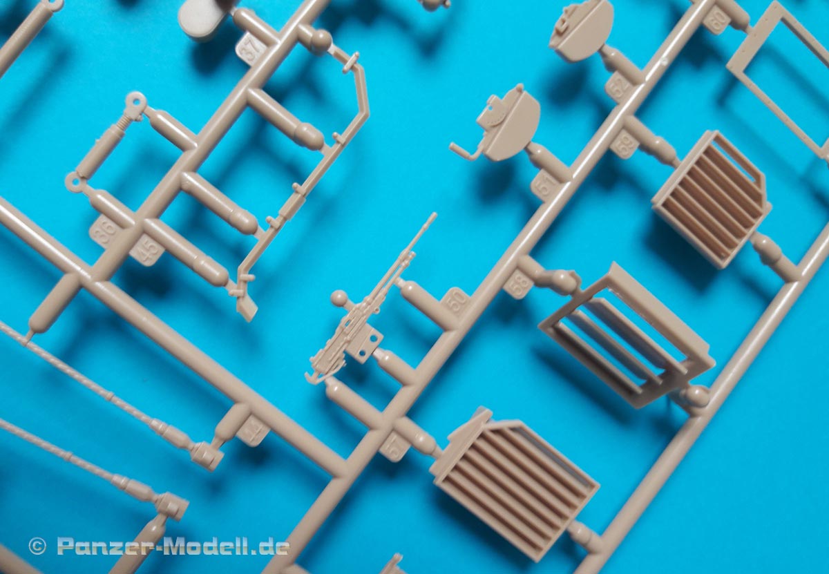 Die Bauteile zeigen sich durchweg sehr gut detailliert auch feinste Details wurden berücksichtigt. Einziges Manko sind für mich die Verschlüsse der Staukisten an US Panzern, diese sind nur als „Klumpen“ angegossen Das konnte zum Beispiel Panda an seinem frühen M1 besser.