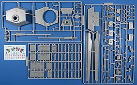 Der Bausatz enthält 6 graue Spritzlinge, Ober- und Unterwanne und einen Decalbogen und ist damit sehr übersichtlich.
