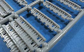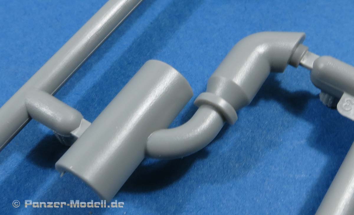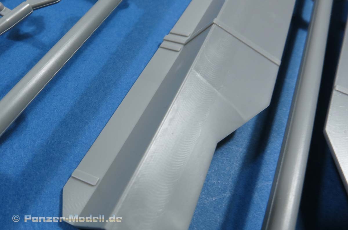 Der Guss der Teile ist auber ohne Singstellen oder störende Auswerfermarken. Die Detaillierung ist ein wenig soft und könnte gerade in diesem Maßstab besser und schärfer sein. Möglicherweise wirken einige Teile auch so soft, da das Plastik so fettig glänzt - auf jeden Fall täte man gut daran diese vorher einmal zu waschen um ggf. vorhandenes Trennmittel zu entfernen.