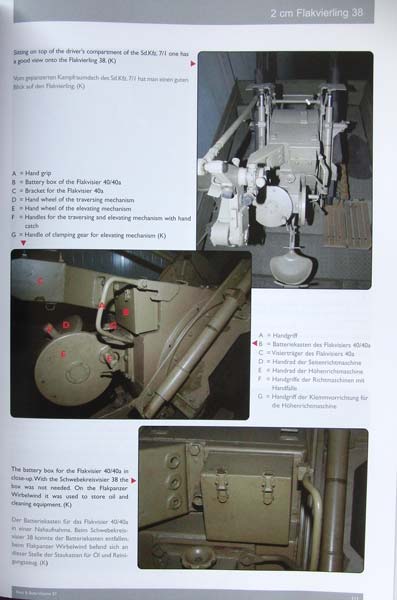 Der rest des Heftes ist mit Farbfotos von überlebenden Geschützen aus nicht weniger als 10 Museen angefüllt. Hier werden alle Rüststände, Bemalungen und alle Details aller Bereiche gezeigt. Jedes Foto wird mit entsprechendem Text erläutert. Zudem wird der Sonderanhänger auch gezeigt und gerade die verschiedenen Visiere dargestellt.
