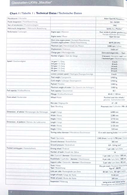 Ebenfalls sehr gut gefällt mir die große doppelseitige Tabelle die all technischen Daten aller Maultier Varianten zusammenfasst.