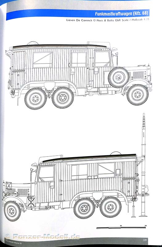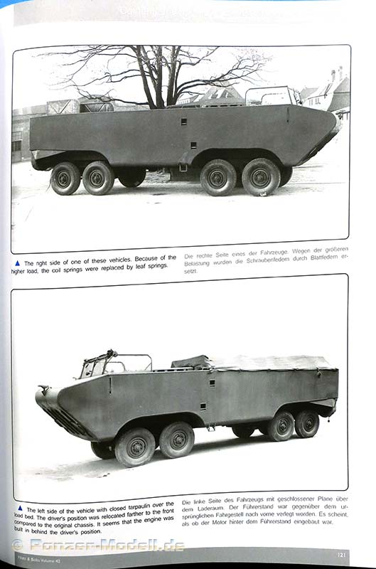 Auch die verfügbaren Aufbauten und Sonderaufbauten werden einzeln aufgeführt und behandelt und man gerät etwas ins staunen, was alles auf dem Einheitsgestell aufgebaut wurde. Darüberhinaus wird auch wieder ausführlich über verwendete Tarnmuster und Markierungen an den Einheitsdieseln berichtet. Am Ende dieses Textblocks wird noch auf die Modellbausätze der Einheitsdiesel eingegangen, sowie die obligatorischen Danksagungen und das Literaturverzeichnis.