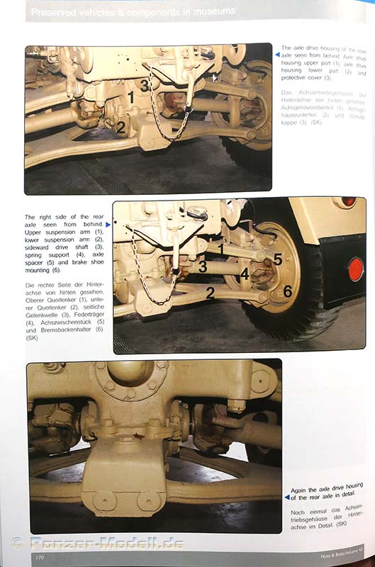 Hier bekommt man An- und Einblicke der verschiedenen Fahrzeuge, die gerade für Modellbauer wichtige Detailfragen klären, wobei man natürlich bei restaurierten Museums- und Sammlerfahrzeugen vorsichtig sein muss was Original und was vielleicht nicht ganz korrekt restauriert wurde. Dabei werden Gesamtansichten und natürlich alle Komponenten einzeln im Detail gezeigt.