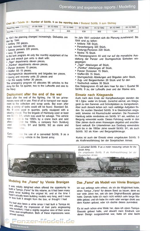 Auch die verfügbaren Aufbauten und Sonderaufbauten werden einzeln aufgeführt und behandelt wie etwa das Sd.Kfz.9/1, Sd,Kfz.9/2, Sd.Kfz.9/3, 8,8cm Flak auf Famo, der Tatra Umbau, 2t Behelfskran, Bergesporn und weitere Umbauten.