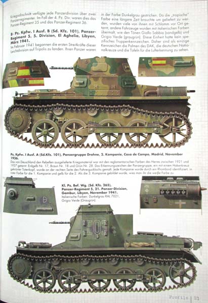 Zwar lautet der Untertitel "Tarnanstriche und Erkennungszeichen der deutschen Panzer von 1935 bis 1945", es handelt sich aber offenbar erstmal nur um den ersten von mehreren Teilen, denn hier sind nur die Panzer von Pz.I bis Pz.IV, Pz.38(t) plus Beutepanzer enthalten.