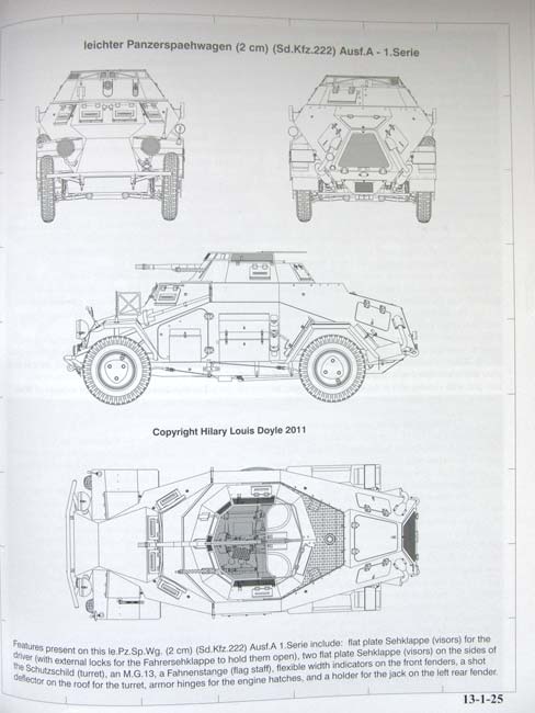 Der hier vorliegende erste Band hat den Titel: leichter Panzerspähwagen Sd.Kfz.221, 222 and 223 & kleiner Panzerfunkwagen Sd.Kfz.260 and 261.