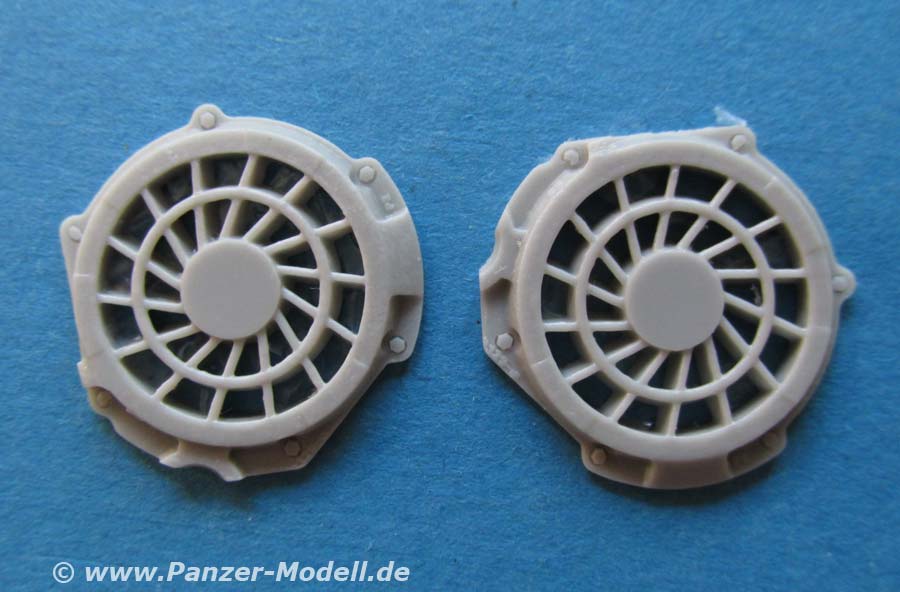 In dem Set finden sich 2 Resinteile zur Darstellung der Lüfterabdeckungen der frühen Panther D.