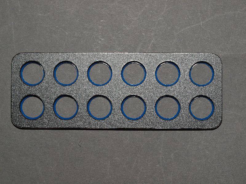 Diese Schablone bietet die entsprechenden Aussparungen für die Räder der Shermans von Tasca (angegeben werden die Sets 35007, 35008, 35009, 35010, 35011, 35012, 35014). Wie die übrigen Sets ist auch dieses aus festem, dicken Material in das die Laufrollen schön hineingelegt werden können, um sie zu lackieren.