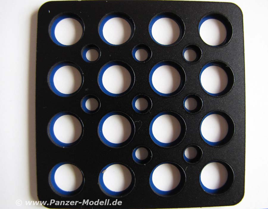 Diese Schablone bietet die entsprechenden Aussparungen für die Räder und Stützrollen für die neueren Panzer IV, Brummbär und Hummel von Dragon (6300, 6315, 6321, 6330, 6360, 6460). Sicher wird diese auch für zukünftiger Dragon Bausätze auf Panzer IV Basis passend sein.