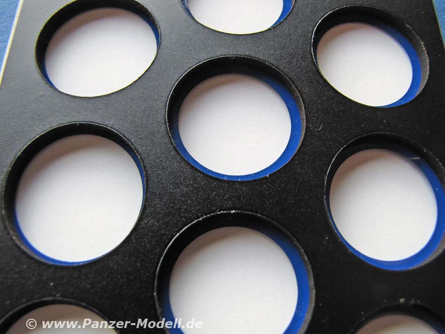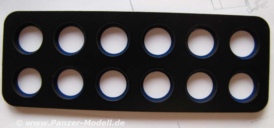 Diese Schablone bietet die entsprechenden Aussparungen für die Räder der Panther A und D von Dragon (angegeben werden die Sets 6299 und 6429).