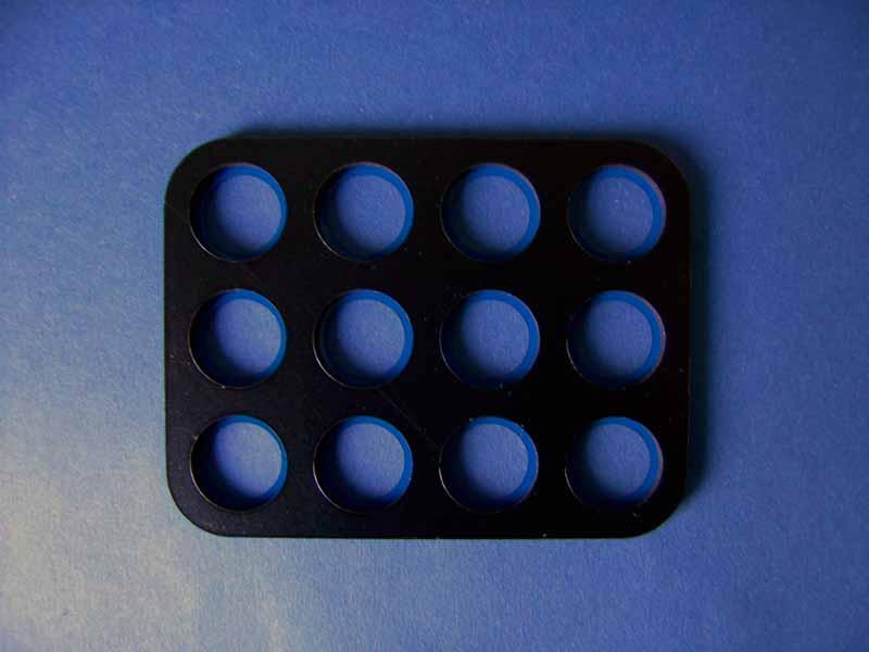 Diese Schablone bietet die passenden Aussparungen für den kompletten Laufrollensatz der PT-76 von Trumpeter. Das Material ist angenehm fest, man kann die Laufrollen bequem einlegen und dennoch werden sie stramm und sicher in der Aussparung gehalten. Die Anwendung ist sehr simpel: Die Laufrollen werden in der gewünschten Farbe der Gummibandage komplett lackiert. Nach vollständiger Trocknung werden die Laufrollen in die Schablone eingelegt und in der entsprechenden Tarnfarbe lackiert.