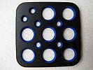 In diese angenehm feste Schablone können die Laufrollen passgenau eingelegt werden und die Laufrollen einer Seite in einem Rutsch lackiert werden, ohne dass die vorher gemalte Gummierung dabei üebrmalt wird, denn diese wird perfekt abgedeckt. Das spart Zeit und Nerven.
