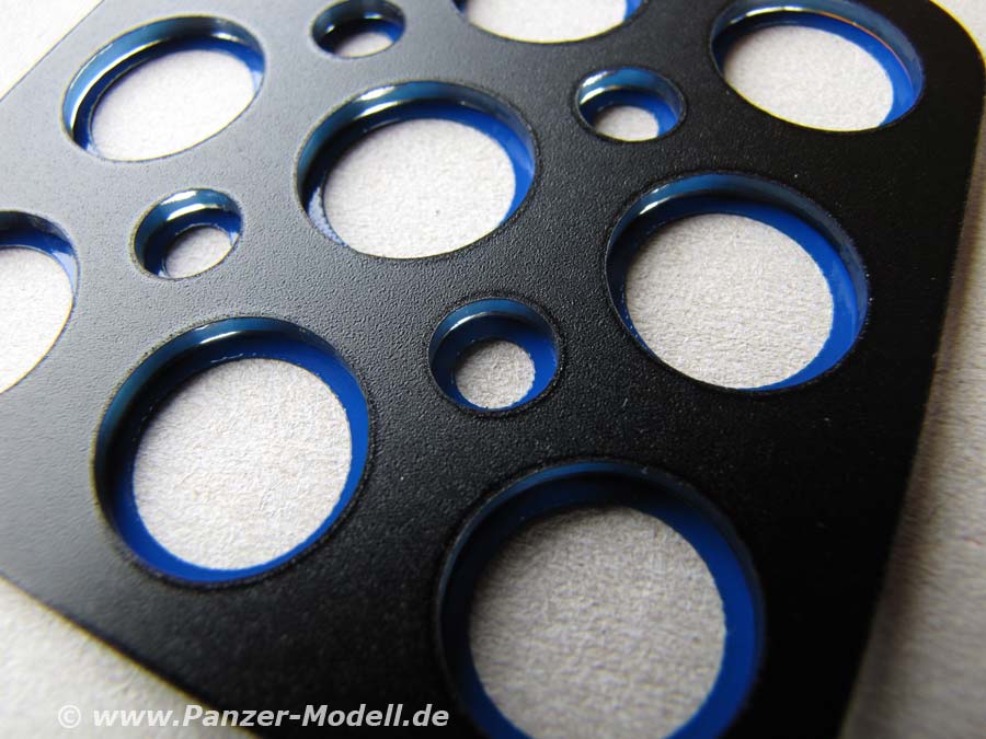 Diese Schablone bietet die entsprechenden Aussparungen für die Lauf- und Stützrollen des Land-Wasser-Schleppers von Hobby Boss.