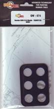 Diese Schablone bietet die entsprechenden Aussparungen für die Laufrollen der SA-6 aus dem Hause Trumpeter (#00361). Analog den bereits erschienen Sets aus dem Hause Quickwheel ist auch dieses aus festem, dicken Material in das die Laufrollen schön hineingelegt werden können, um sie zu lackieren.