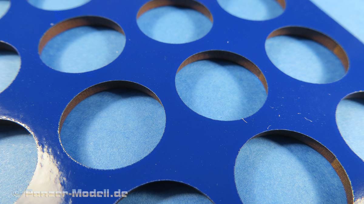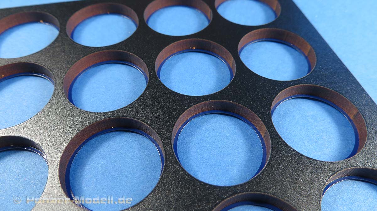 Wie bekannt und beliebt, sind auch diese Schablonen aus festem, dicken Material, in das die Laufrollen und Treibräder schön saugschmatzpassend hineingelegt werden können, um sie zu lackieren.