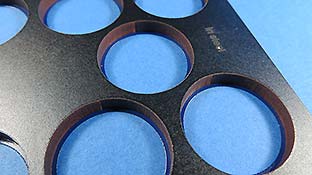 Der große Vorteil dieser Art Spritzschabone ist, dass die Laufrollen zum einen ALLE gleichzeitig lackiert werden können und zum anderen exakt und schnell hineingelegt werden können.