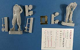 In der Verpackung finden wir 8 Resinteile zum Bau von 2 Figuren, sowie eine Platine PE Teile und ein Decalbogen.