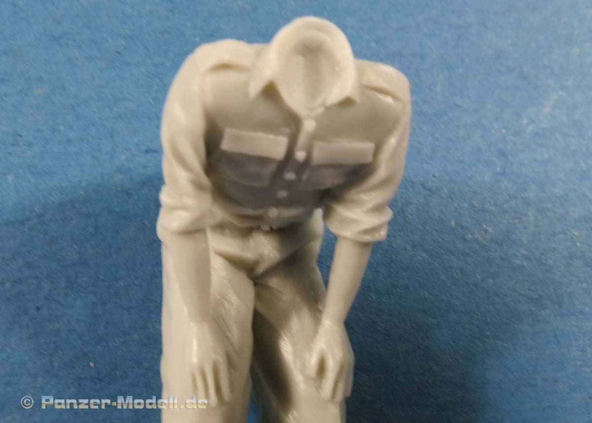 Auch der Faltenwurf der Uniformen beider Figuren ist sehr schön realistisch und passend zur Haltung. Auch die bereits angegossenen Details an den Uniformen wie Gürtel, hochgekrempelte Ärmel, aufgesetzte Taschen, usw. sind sehr gut dargestellt.