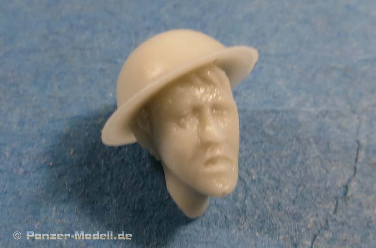Für jede Figur stehen zwei verschiedene Köpfe zur Verfügung. Diese machen einen hervorragenden Eindruck mit den detaillierten Gesichtern und bereits angegossenen Kopfbedeckungen. Diese sind jeweils einmal mit Barett und einmal dem typisch englischen Helm - letzterer mit Kinnriemen, sehr sehr schön gemacht.