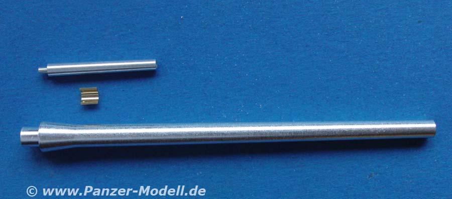 Das Set beinhaltet die beiden Rohren der Hauptbewaffnung als einteilige und schön gedrehte Alurohre. Diese sind sauber gedeht und weisen eine exzellente Innendetaillierung mit Feldern und Zügen auf.