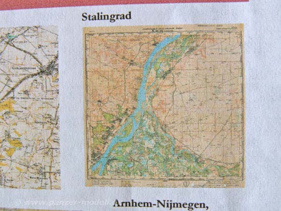 Nein, man ist hier auf extrem dünnes 50g Papier umgestiegen und hat 22 verschieden große Karten von verschiedenen Kampfgebieten des 2.Weltkriegs farbig aufgedruckt. Dank des dünnen papiers können diese nun realistisch gefaltet oder entsprechend hängend dargestellt werden.