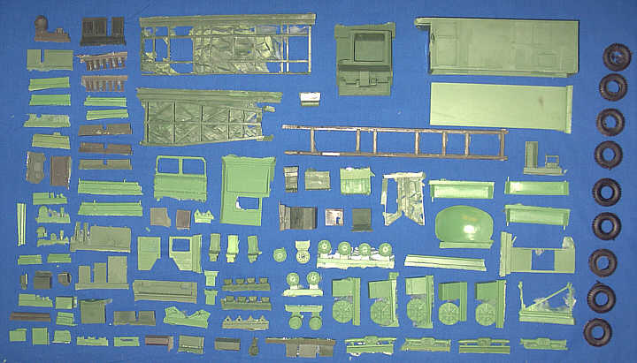 Die Kleinteile umfassen z.B. Antriebswellen, Nebelbecher, Griffe, Tritte und dergleichen. Bei den Zinnteilen ist einiges an Versäuberung nötig, so daß man hier soweit möglich auf die heimische Grabbelkiste ausweichen sollte. Interessant ist, daß RN die Radaufhängung mit echten Spiralfedern realisiert - speziell für Dioramenbauer ein nettes Feature. Der Aufbau des Roland Rad ist recht gut detailiert, Chassis und Radaufhängungen sind dagegen leider recht rudimentär ausgefallen. Vom filigranen Fahrwerk des MAN 15t mil gl KAT A1 ist leider außer den vier Achsen nichts übrig geblieben, gleiches gilt für sämtliche Details des Rahmens - diese sucht man vergebens. Aber - im Gegensatz zu den Revell MAN Modellen hat man hier von Haus aus die Möglichkeit die beiden Vorderachsen eingelenkt darzustellen.