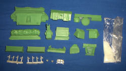 Die Gussqualität dieses recht umfangreichen Bausatzes ist überwiegend als gut zu bezeichnen. Sicher nicht auf dem Niveau führender Resinschmieden wie Elite, Accurate Armour oder New-Connection, aber RN scheint auf dem richtigen Weg zu sein. Allzuviele störende Bläschen gibt es nicht, i.d.R. nur feine Bläschen an der Oberfläche. Die Teile sind überwiegend verzugsfrei, lediglich Chassis und eine Tür sind leicht verzogen, das sollte aber einfach mit warmen Wasser zu korrigieren sein.
