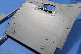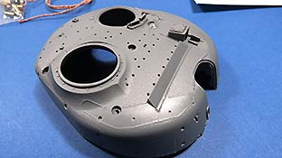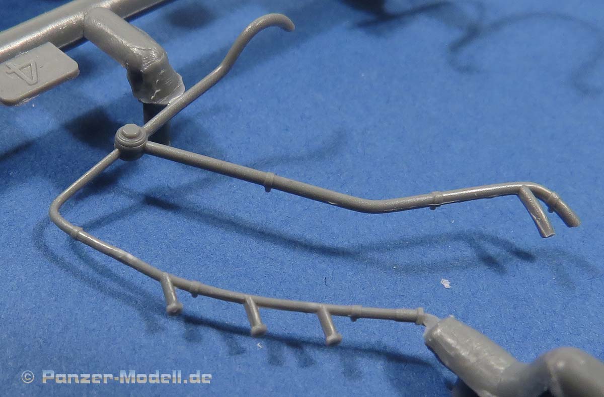 Die Deckplatte der Oberwanne ist einteilig mit der Fahrerluke, die offen oder geschlossen baubar ist. An der Bugplatte werden die Zusatzpanzerelemente angebracht, die einen guten Eindruck vermitteln.