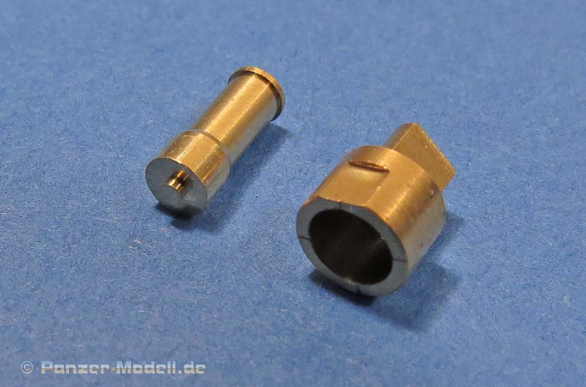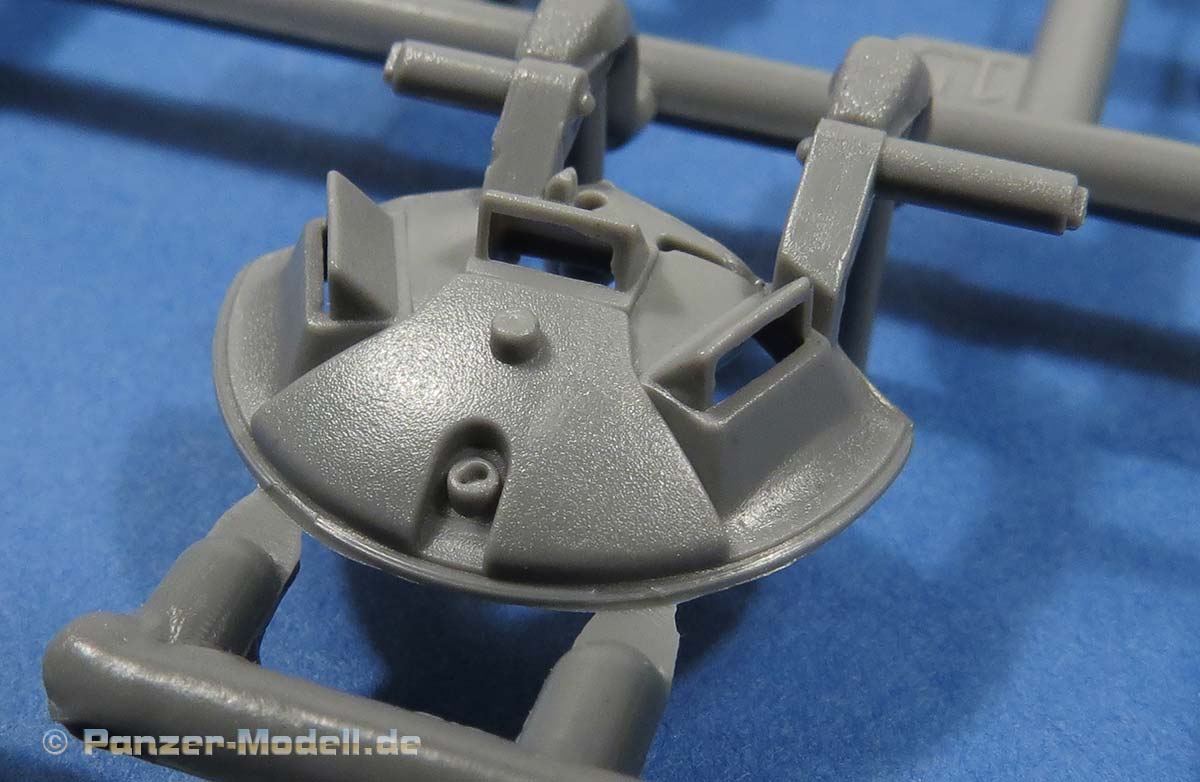 Die Kanonenblende wird höhenbeweglich eingebaut. Das Kanonenrohr ist aus Plastik aber mehrteilig ausgeführt - das ist zwar nicht unbedingt der letzte Schrei, aber mit den detaillierten Wärmeschutzhüllen wohl schwerlich anders möglich und die Trennähte der Elemente verbergen damit ganz gut die tatsächlich Formtrennnähte.