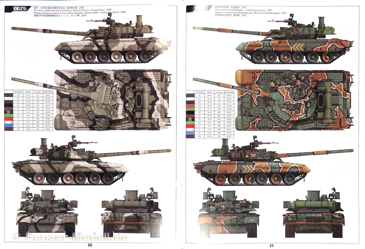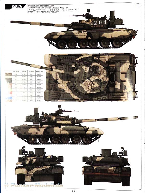 Am Ende der Bauanleitung bietet RPG farbige Profile für fünf verschiedene Versionen, die optisch sehr ansprechend gestaltet sind. Die Farbangaben sind für Mr.Color, Tamiya, Vallejo und Transform.