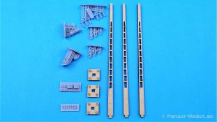 Von RT-Diorama gibt es ein weiteres Set um Dioramen zu “veredeln”. Diesmal stehen uns drei gelaserte Lampenmasten mit Fundamenten zur Verfügung. Diese sind im Original aus Beton gegossen. (Ab und an finden sich diese Relikte noch in den Neuen Bundesländern.) Eine betongraue Farbe empfiehlt sich als Grundierung. Das beiliegende Zubehör aus dem 3D-Drucker lässt den Bau von drei verschiedenen Masten zu. Einmal sind die Isolatoren senkrecht anzubauen und einmal befinden sie sich auf einem sehr schön gemachten Quertragwerk. Am letzten Mast wird eine für die damalige Zeit typische Strassenlampe angebracht. Für die Leitung zur Lampe finden wir kleine Halterungen und Verteilerkästen. Eine kleine Platine mit Bolzen liegt ebenfalls bei. Die Teile bestechen durch einen sehr feinen Druck. Raster, Schichten etc. sind keine zu erkennen. Einfach perfekt. Ein richtig schönes Set für Dioramenbauer. Auch für Modellbahner der größeren Spuren ein nützliches Zubehör. Sehr empfehlenswert.