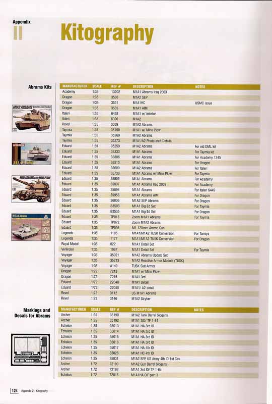 Abgerundet wird des Heft mit einem kurzem Bericht zu IED's. Den Abschluss bildet eine recht umfangreiche Übersicht zu den erhältlichen Bausätzen und Zubehörsets zum Abrams, Bradley und Stryker. Dies ist mal eine gute Idee, da man grade bei den Zubehörsets den Überblick verlieren kann.