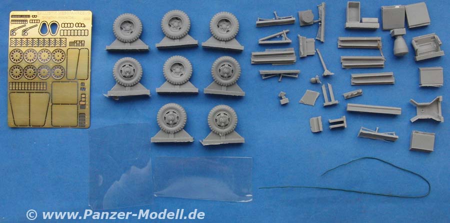 In dem voluminösen Karton findet sich eine Menge fein gegossener Resinteile, Draht, Klarsichtmaterial und natürlich ein PE-Satz.