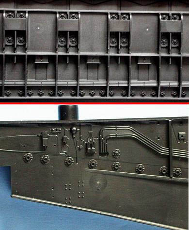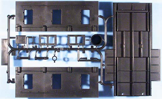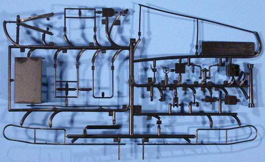 Die Kunststoff-Teile sind komplett in SCHWARZ. Daraus ergaben sich einige Probleme beim Erstellen der Fotos. Hier musste ich am Ende eines langen Tages einen Kompromiss eingehen. Das bedeutete Nacharbeit am PC damit auch auf den Fotos was zu sehen ist. Bei einem großen Teil der Abbildungen ist das auch gelungen. Ein weiteres Problem war die teilweise über Normal-Modellbau hinausgehende Größe einiger Spritzlinge und Einzelteile. Was da beim Reproduzieren von bis zu 100cm (!) großen Vorlagen am Ende beim Zuschneiden auf 520 x 390 Pixel (MV-Format) an Details übrig bleibt, kann sich jeder der sich damit auskennt vorstellen.