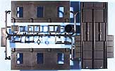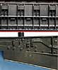 Die Unterlafette besteht im wesentlichen aus 4 Einzelteilen von 100cm Länge. Jeweils ein Bauteil L1/L2 und ein Teil L3/L4 müssen miteinander verschraubt werden. Dabei werden gleichzeitig auch die entsprechenden Teile der Oberlafette aufgesetzt und mit befestigt. Anschließend müssen auch hier wieder Laufstege, Geländer und Leitern sowie weitere Kleinteile angebracht werden. Damit wäre die Lafette zur Aufnahme des Geschützrohres, respektive der Rohrwiege mit dem Geschützrohr bereit