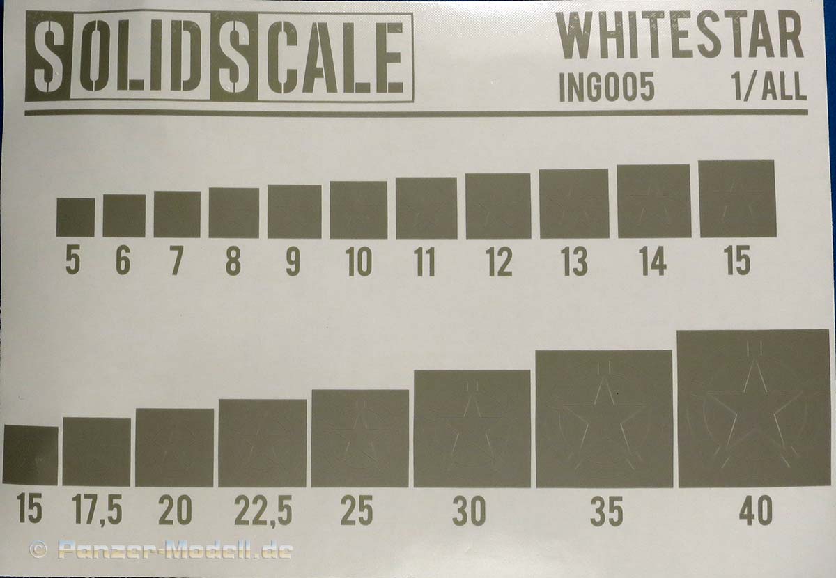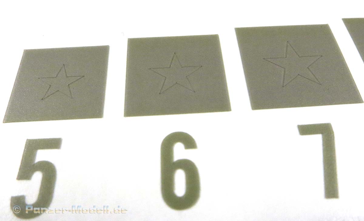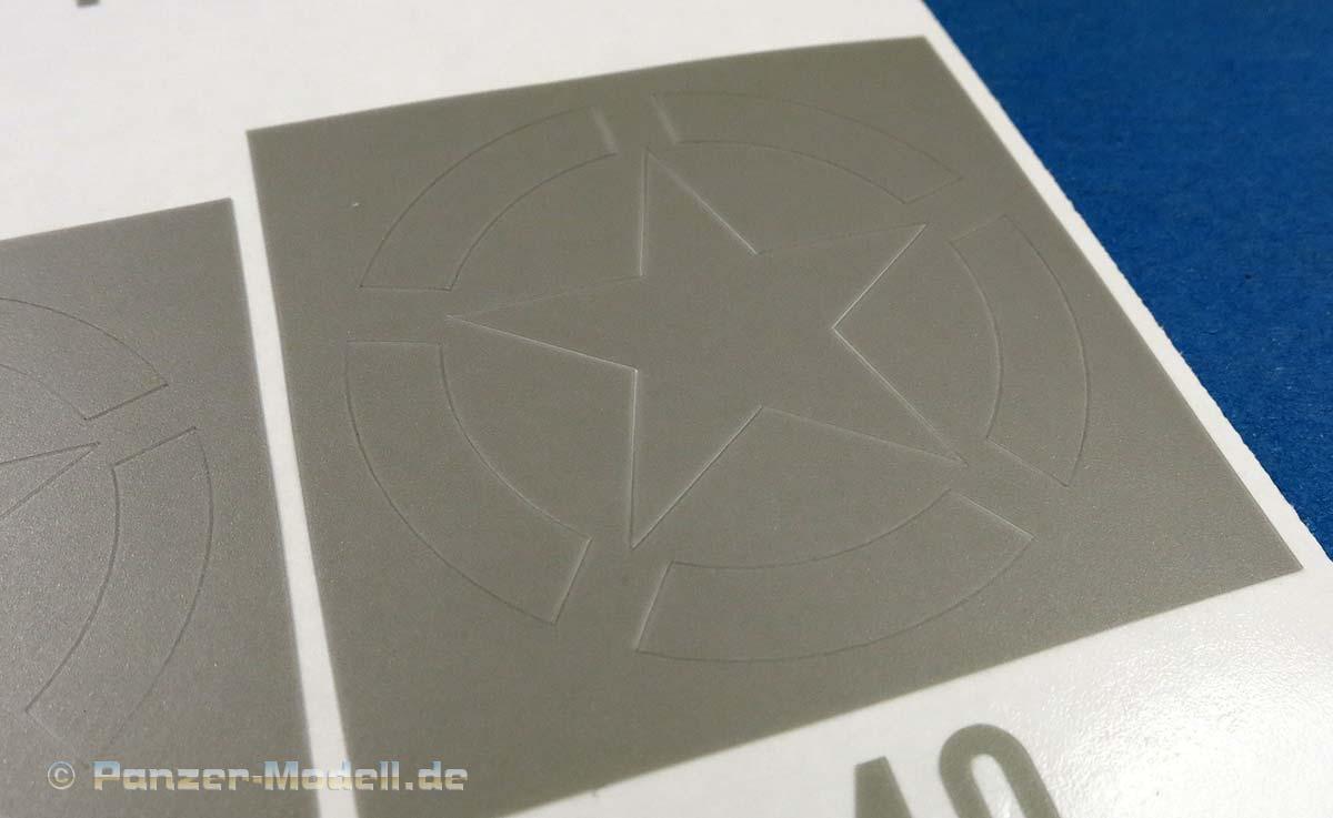 In diesem Set findet sich eine DIN A5 Folienmaske zum Aufsprühen von den weißen Sternen als Hoheitsmarkierungen auf US Panzern und Fahrzeugen.